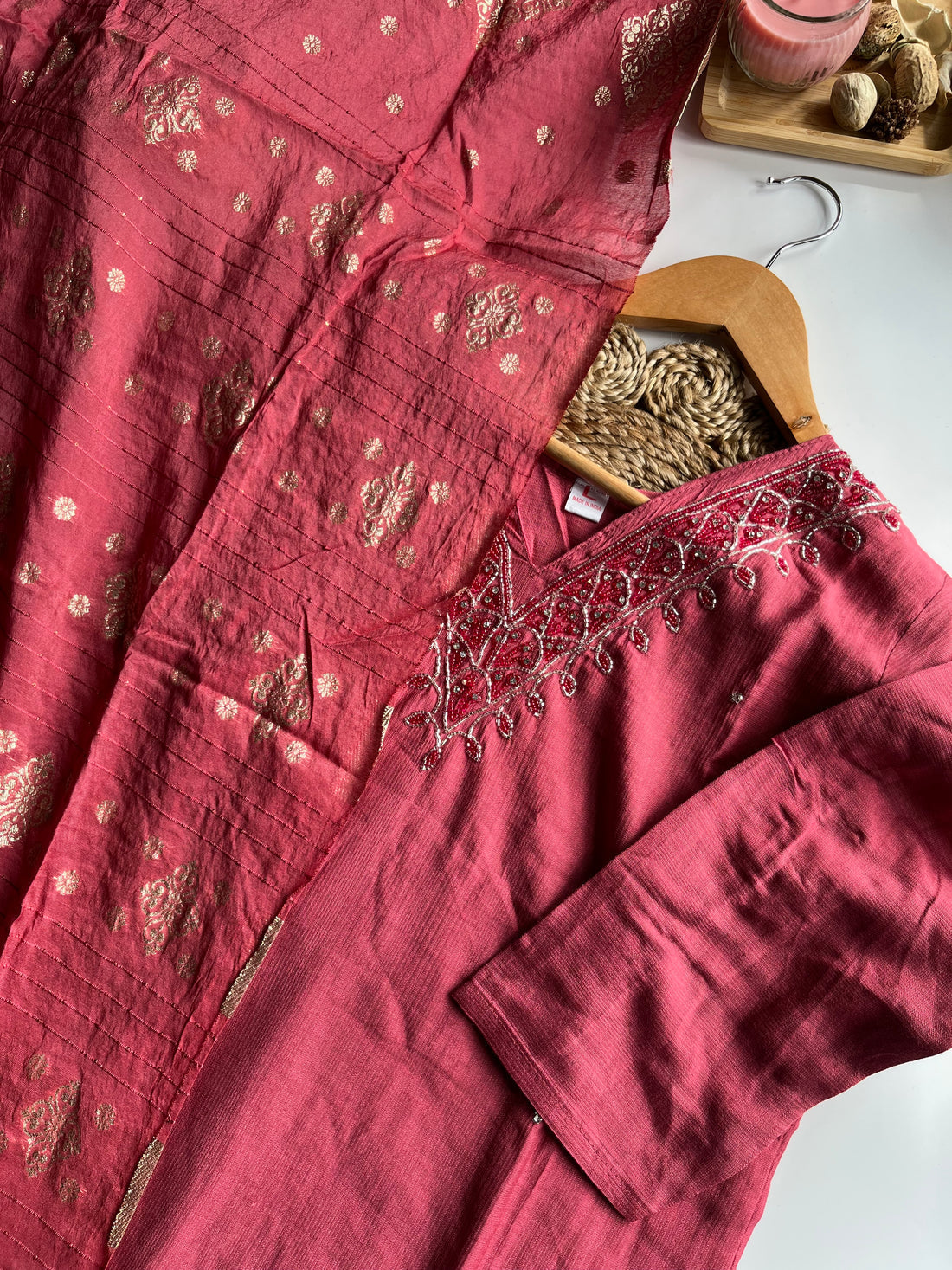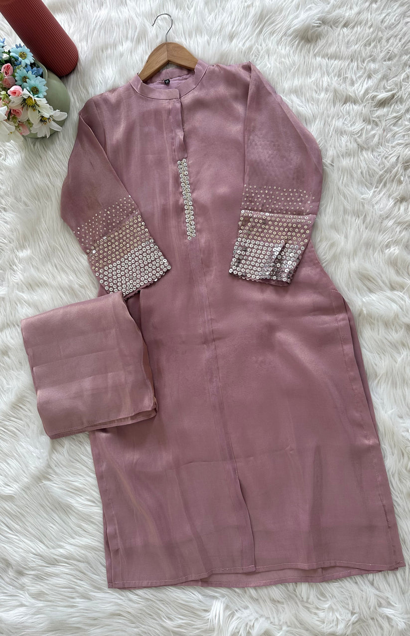 "Sandhya" Dusty Pink Tissue Silk Kurti Set