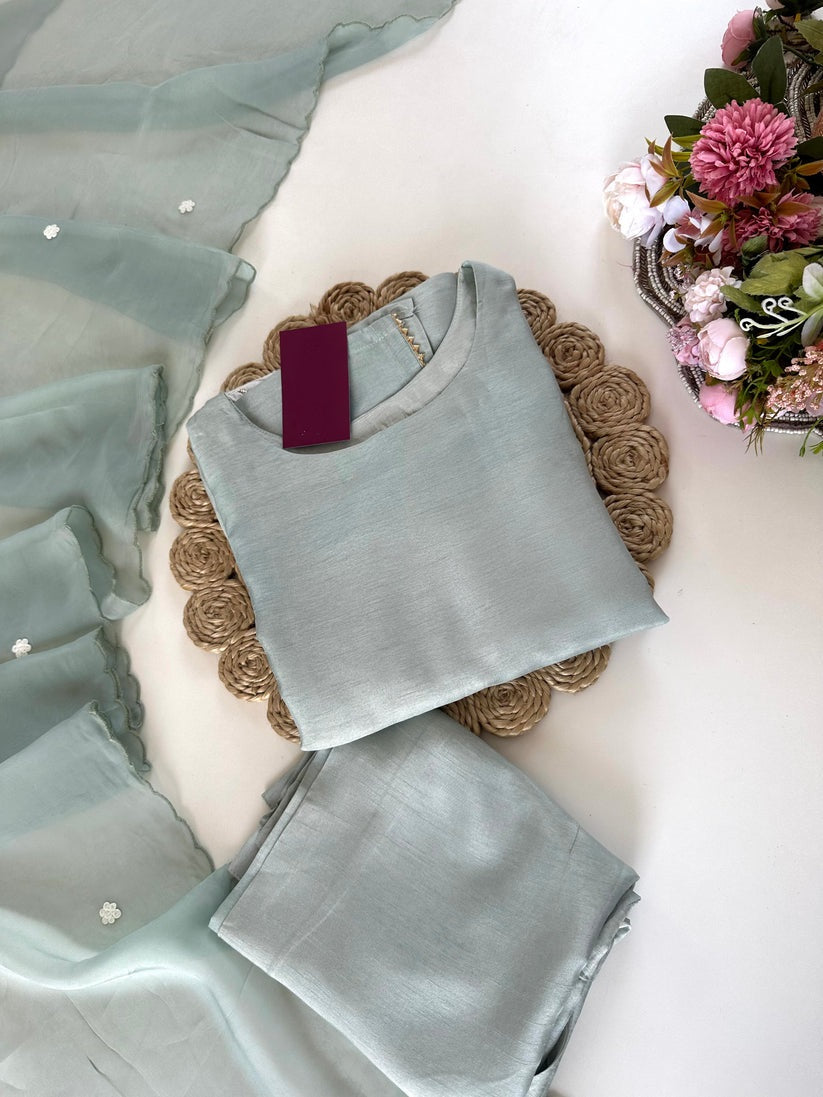 Hand work kurta Pant with dupatta with Zardosi work