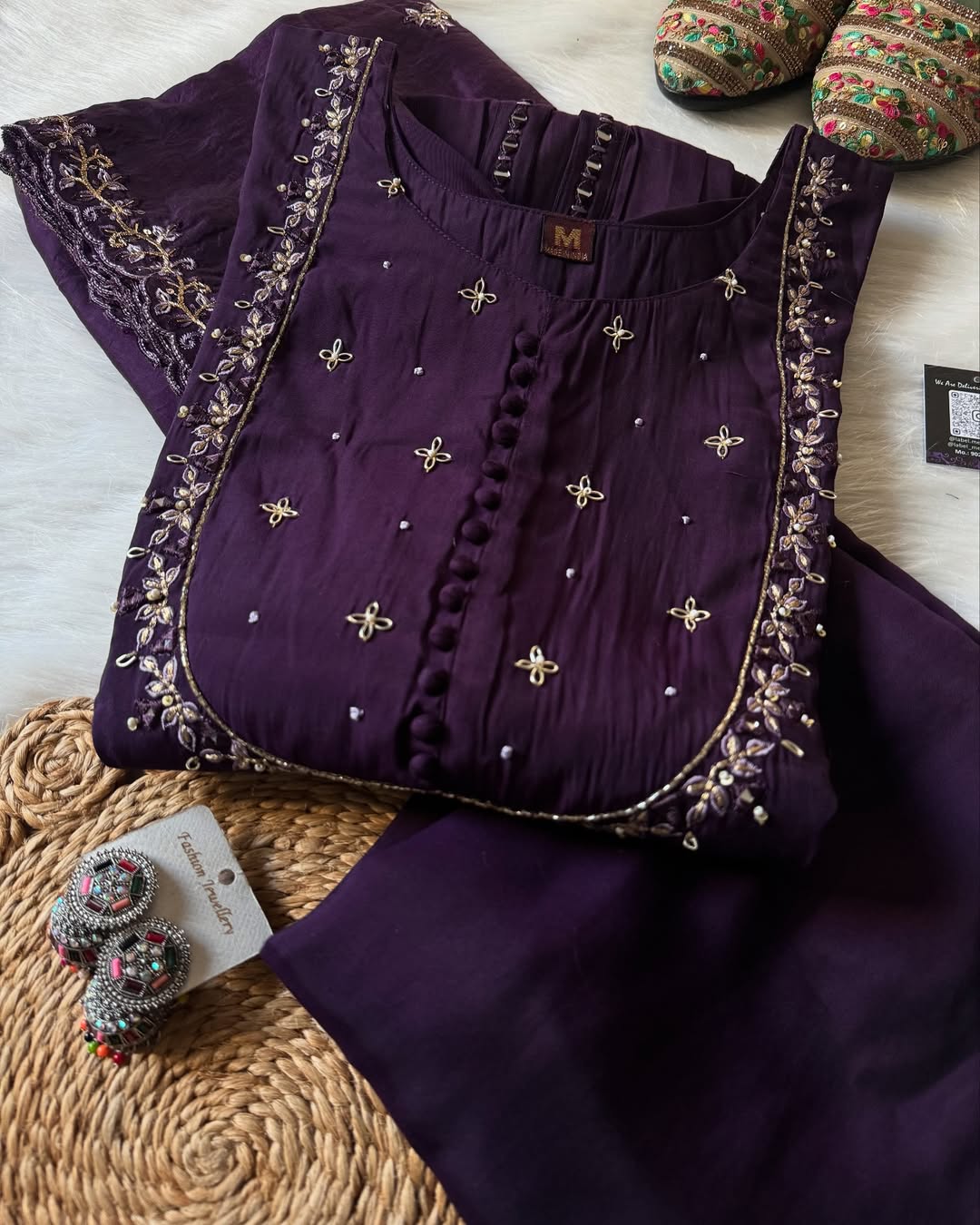 Mul Chanderi Handwork Straight kurti with pants and dupatta is a stylish and elegant outfit...