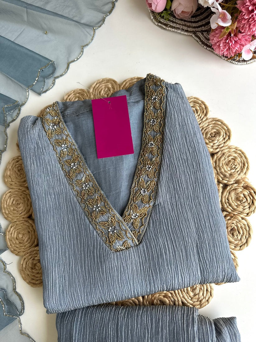 K102 - Crush tissue handwork straight Kurti with pants and dupatta