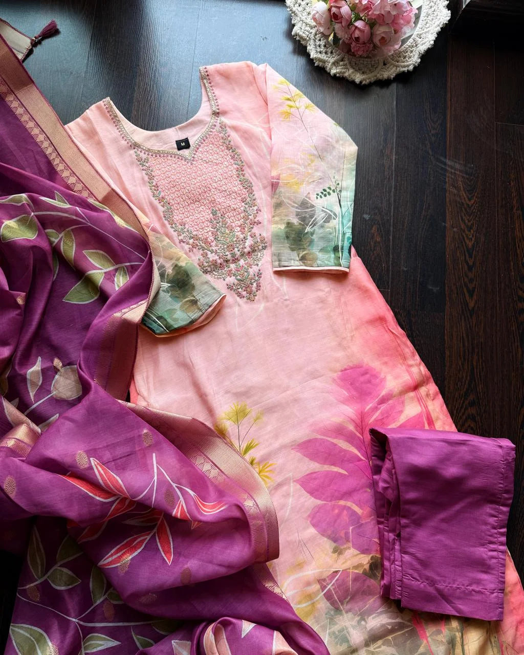 Premium Cotton Muslin Floral set- Pink
