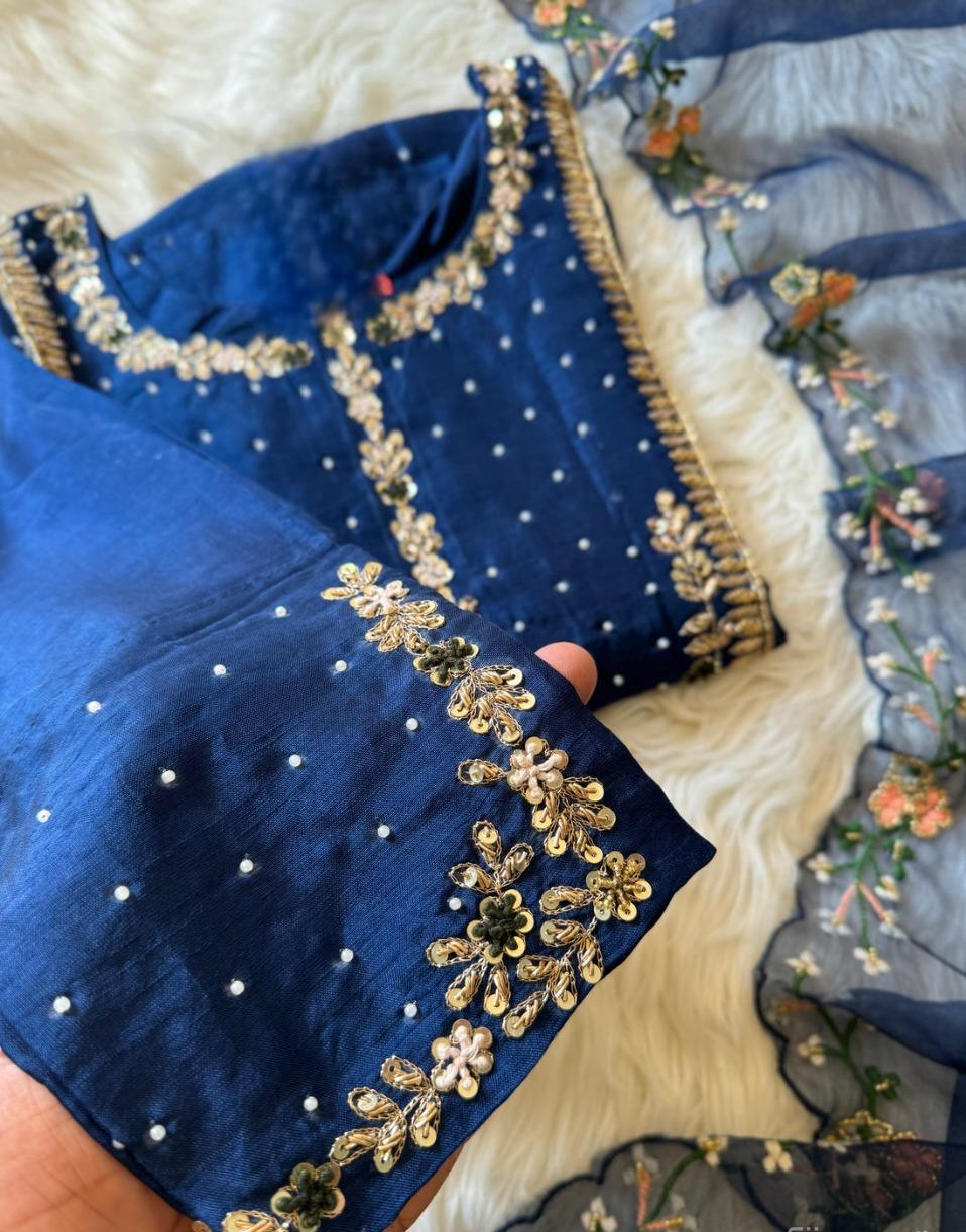 Blue hand work + embroidered kurta set with dupatta